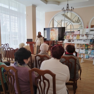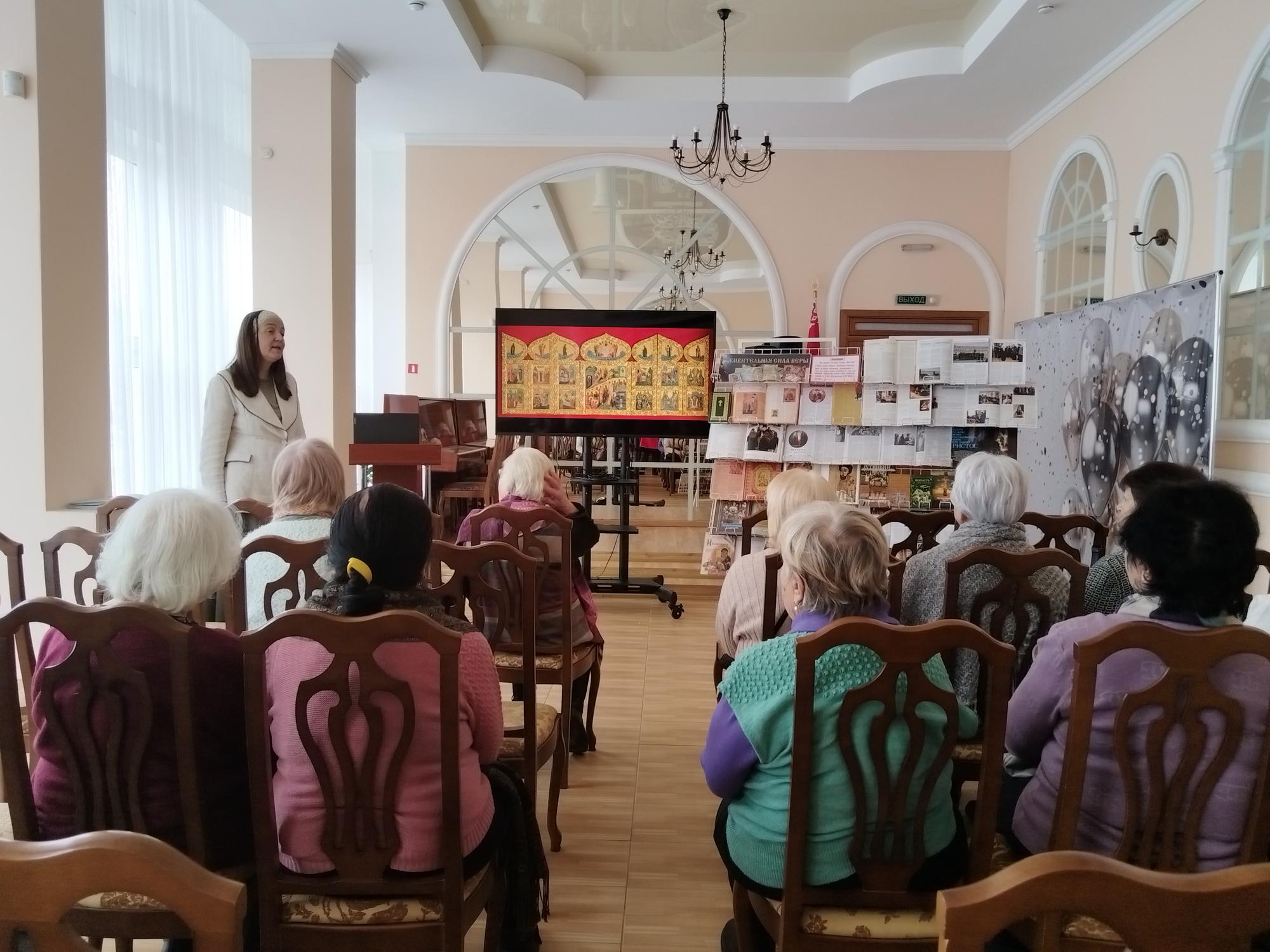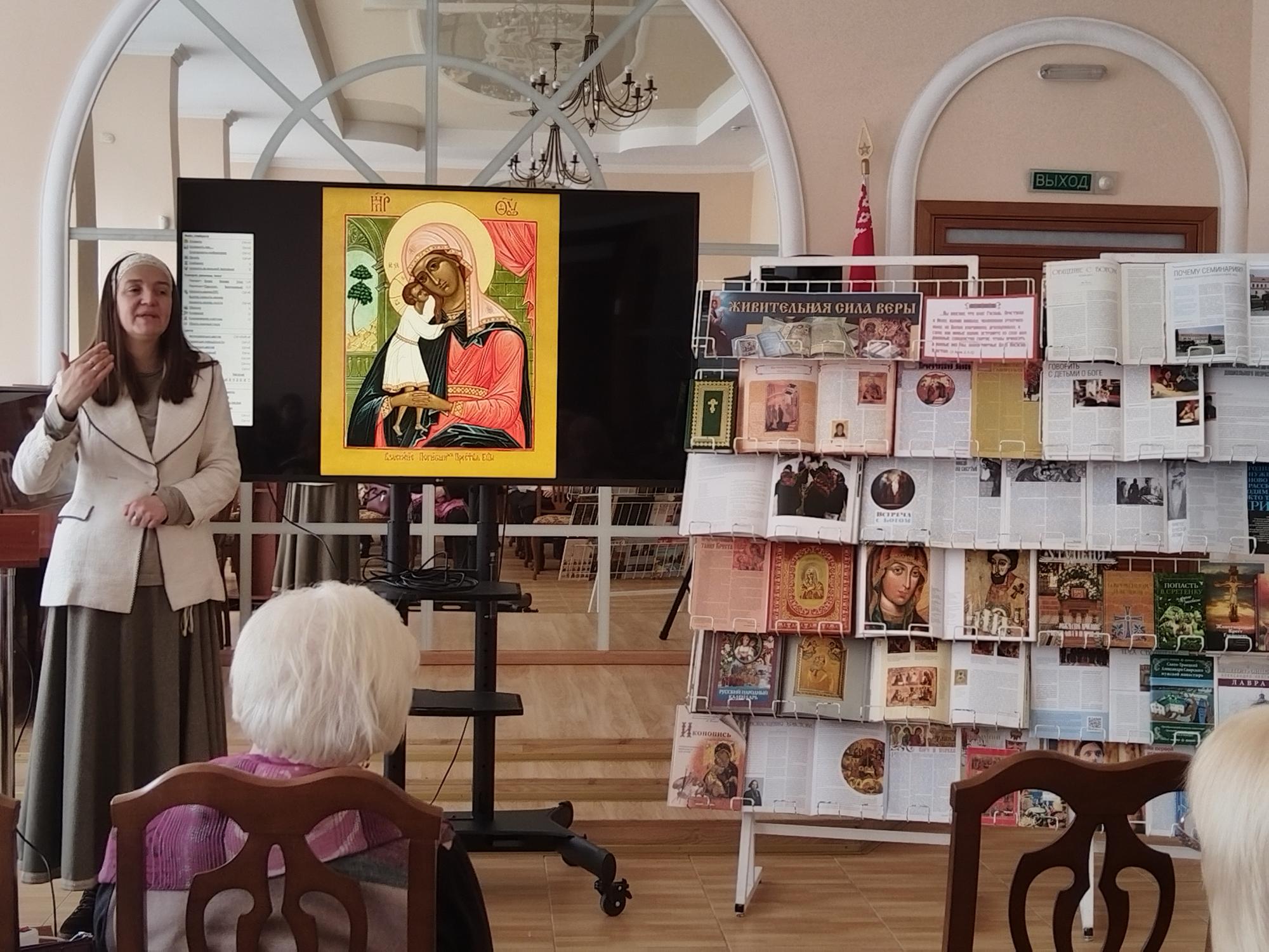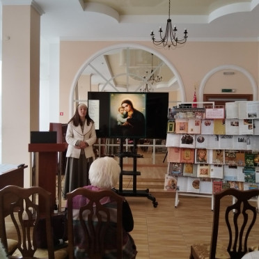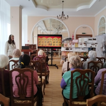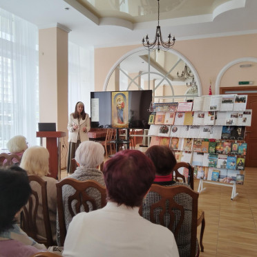 18 февраля в конференц-зале библиотеки им. А. С. Пушкина Наталья Николаевна выступила с лекцией «Икона «Сретение Господне».