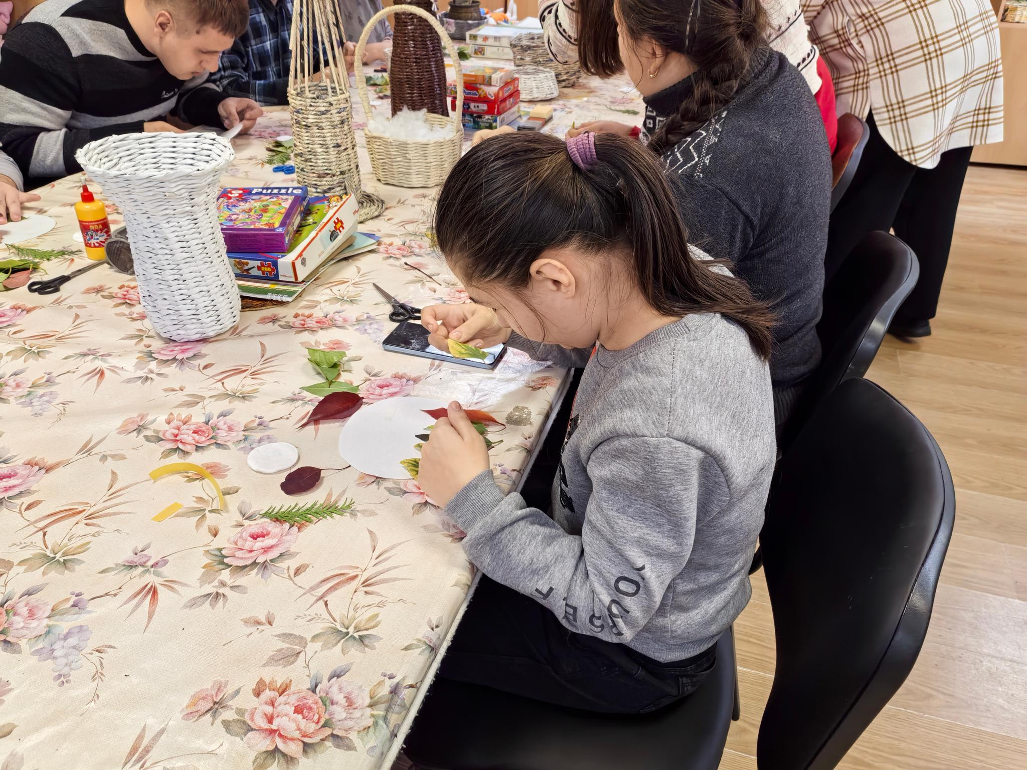 В дружеской атмосфере ребята выполнили аппликацию с элементами вырезания и рисования. В своих работах использовали богатую осеннюю цветовую палитру. У каждого участника мастер-класса получилась яркая и неповторимая осенняя поделка.