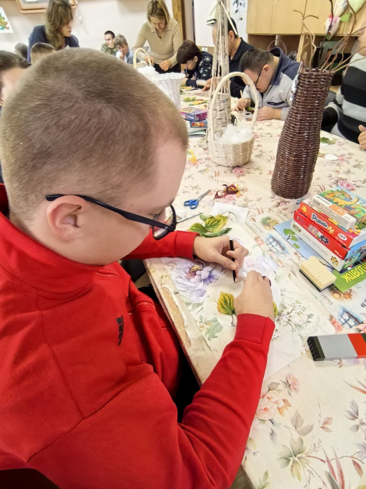 Осень – по-настоящему волшебное время для творчества. В этом убедились в конце октября люди с инвалидностью ГУ «Территориальный центр социального обслуживания населения Московского района г. Бреста». Здесь для них библиотекари 12 филиала провели мастер-класс «Краски осени прекрасной».