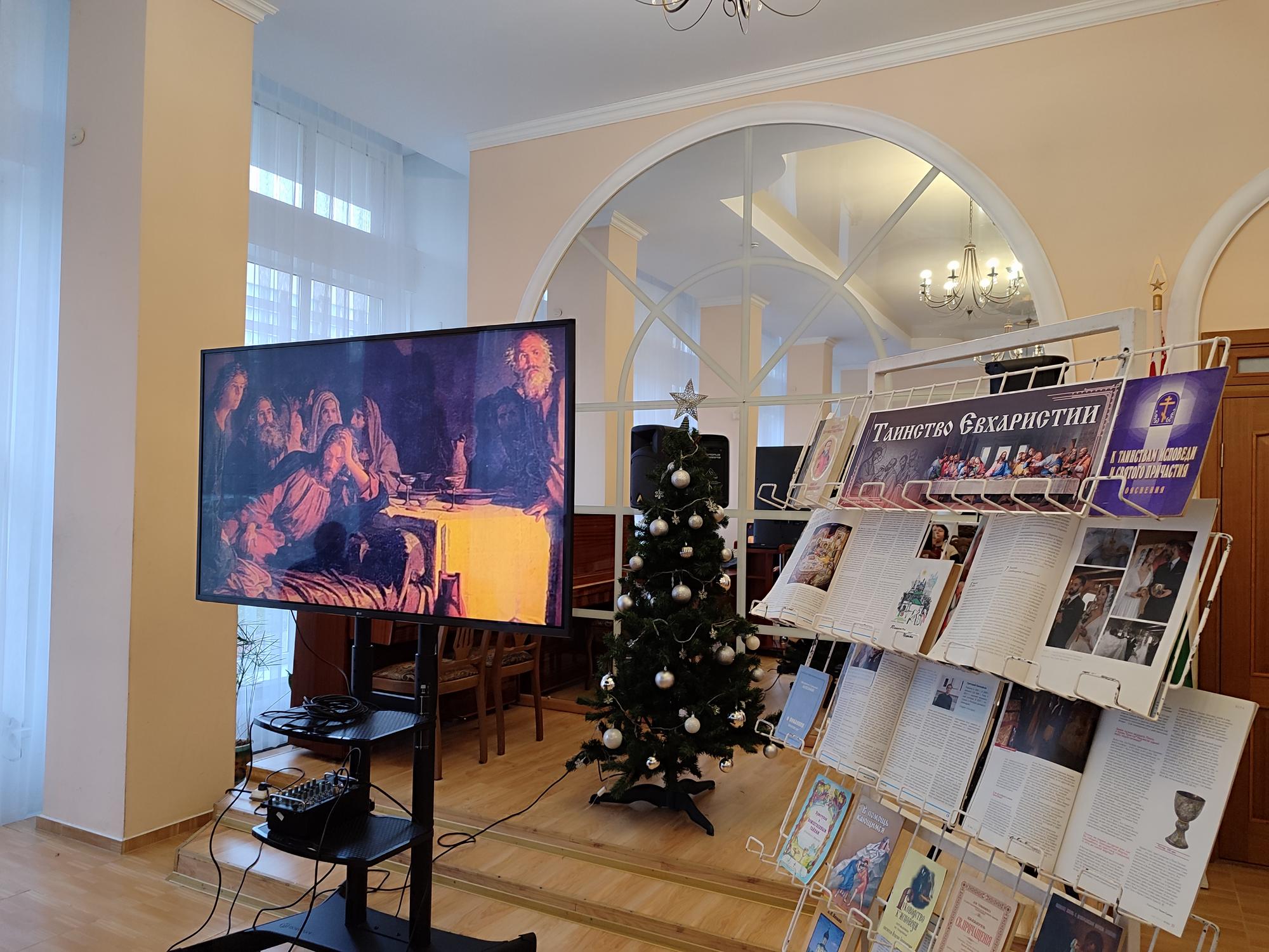 Специально к мероприятию была подготовлена тематическая выставка литературы «Таинство Евхаристии». Были представлены книги об исповеди, о подготовке к исповеди, а также другие материалы, помогающие осознанно подходить к этому важному событию в духовной жизни.