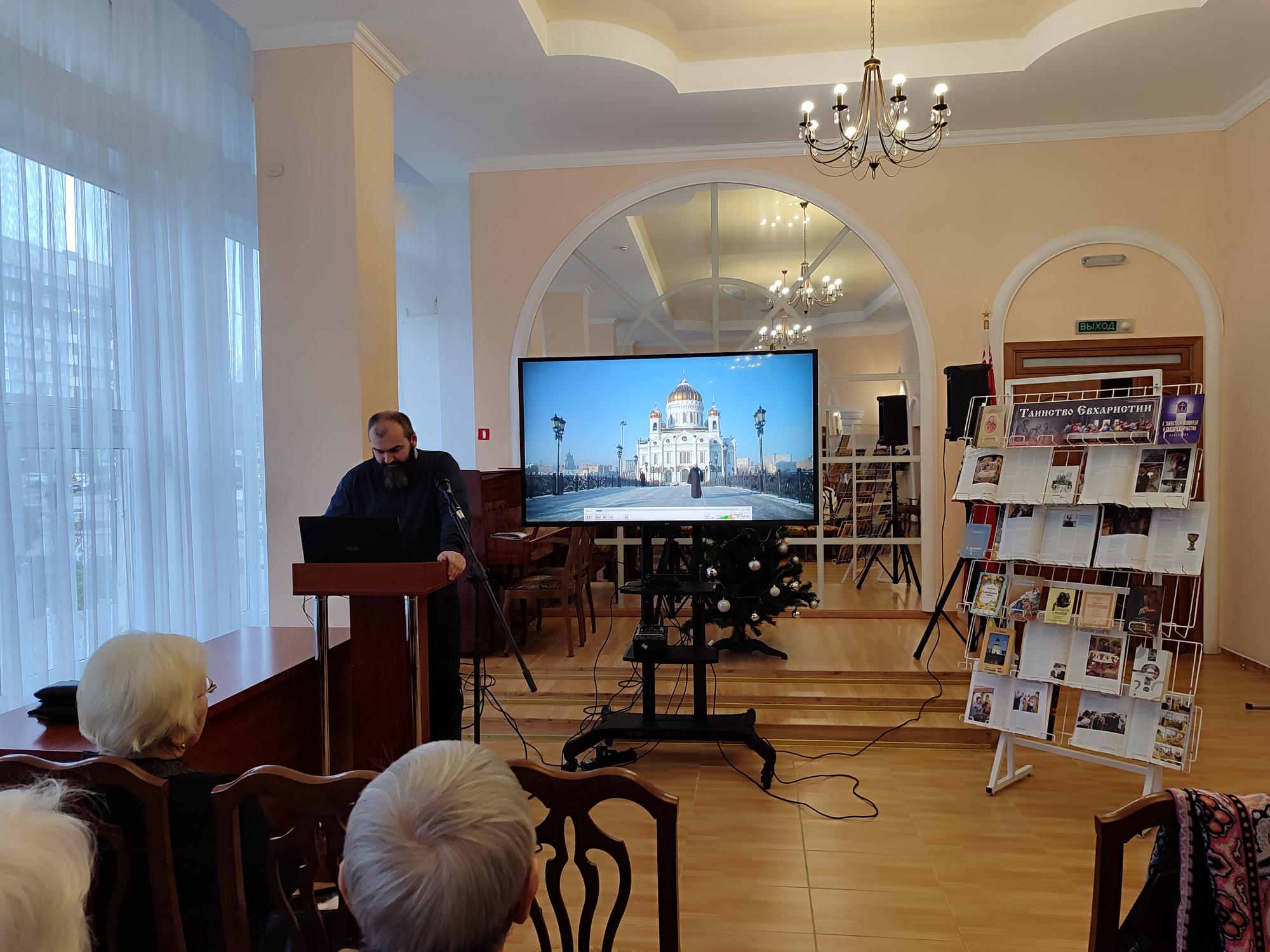 В рамках духовно-просветительского проекта «Виноград» в центральной городской библиотеке им.А.С.Пушкина 15 декабря состоялась лекция священника Игоря Лопыко, посвященная Таинству Евхаристии.