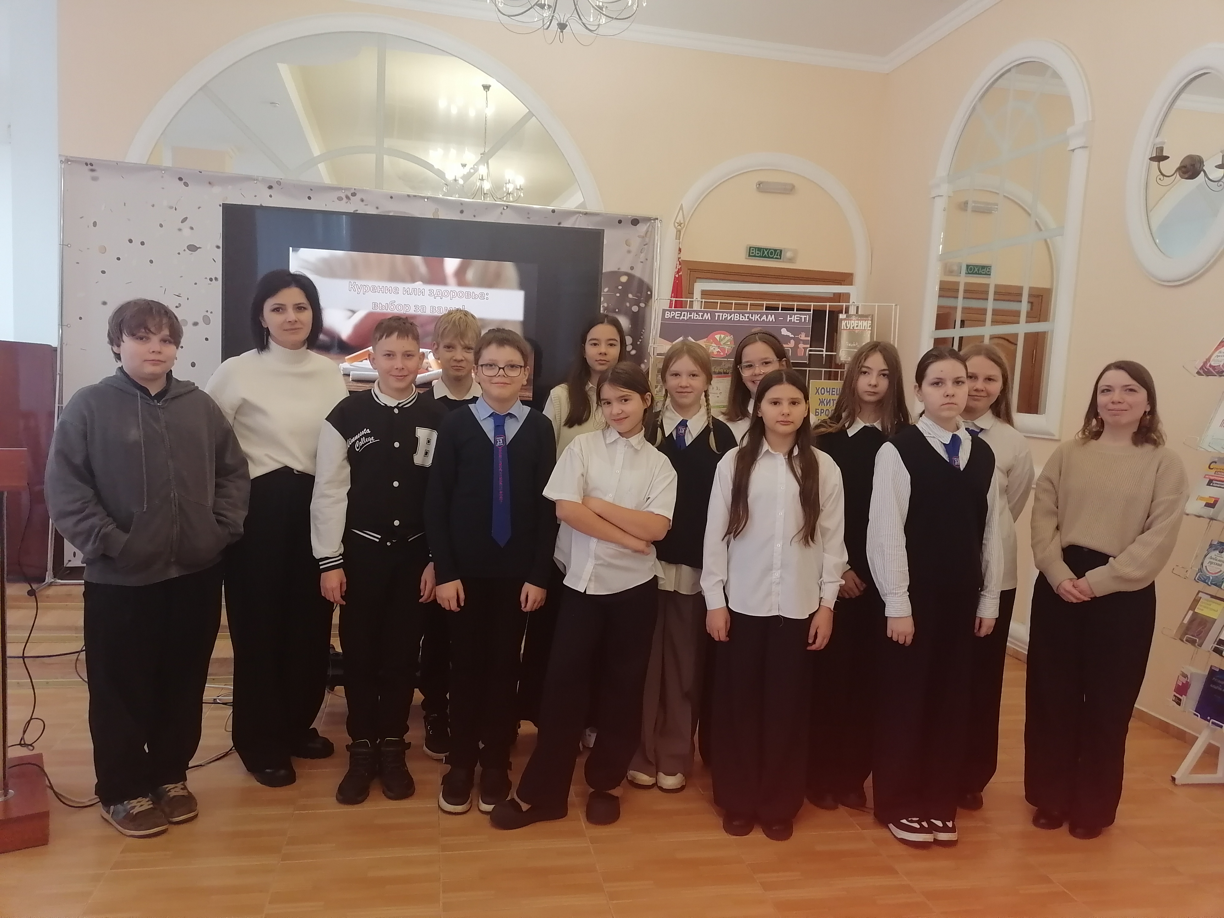 20 ноября, в Международный день отказа от курения, в Центральной городской библиотеке имени А.С. Пушкина состоялась беседа учащихся 9 «Б» класса ГУО «Средней школы № 15» со специалистом Брестского зонального центра гигиены и эпидемиологии Корнелюк Ульяной Константиновной.