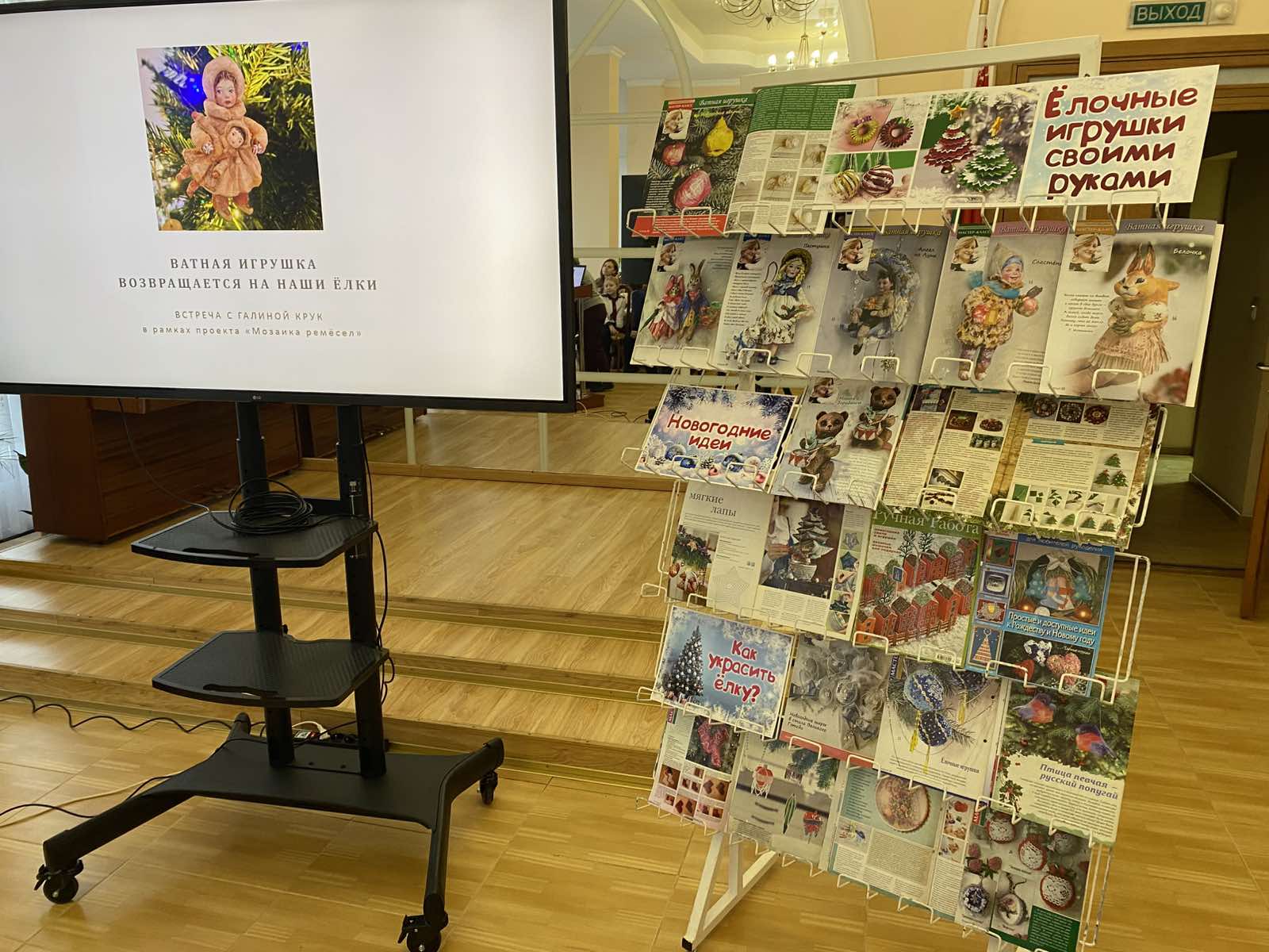 Очередная встреча в рамках проекта «Мозаика ремёсел» прошла в Центральной городской библиотеке им. А.С.Пушкина 3 декабря. В этот раз гостьей мероприятия стала ремесленник, мастер ёлочных игрушек из ваты Галина Крук.