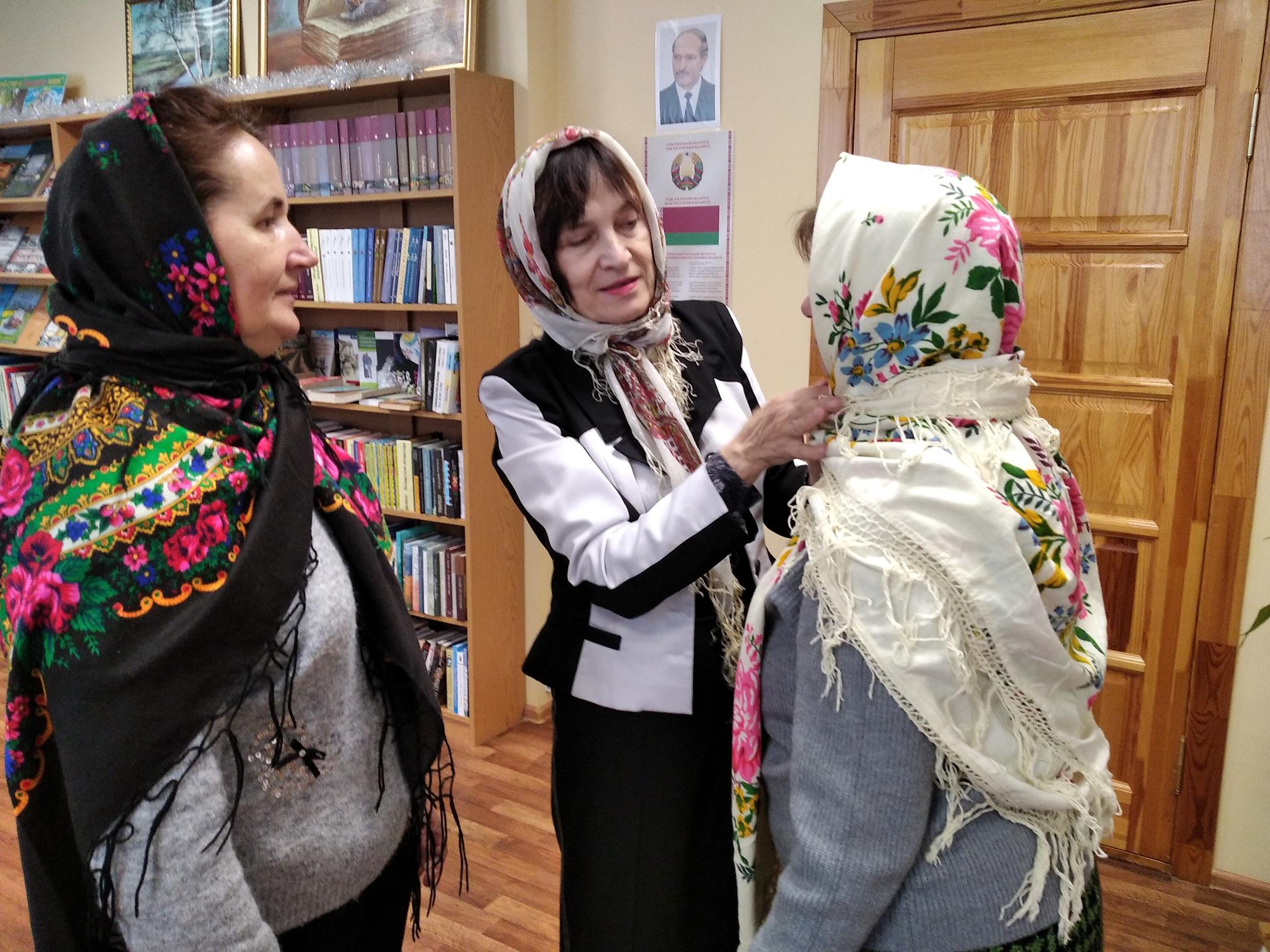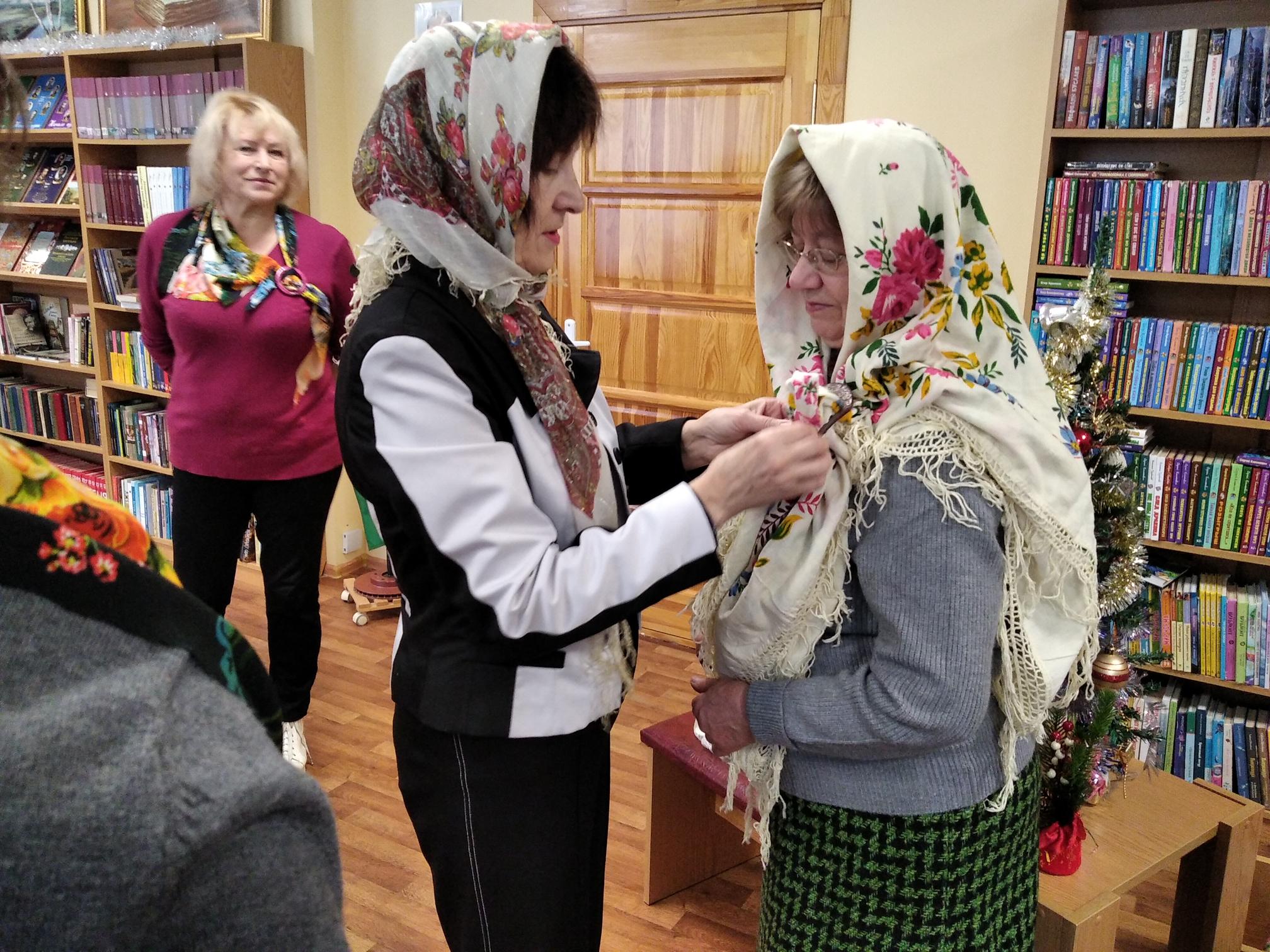 Под таким названием прошёл час досуга в клубе «Флора», что при библиотеке-филиале № 2. Рождественский «Модный приговор» для присутствующих подготовила член Белорусского союза мастеров народного творчества Галина Зигмундовна Масюк. Она провела мастер-класс по завязыванию платков с пряжками. Платки, к слову, все получили в подарок. Также Галина Зигмундовна показала, как завязывались большие платки в старину на Руси.