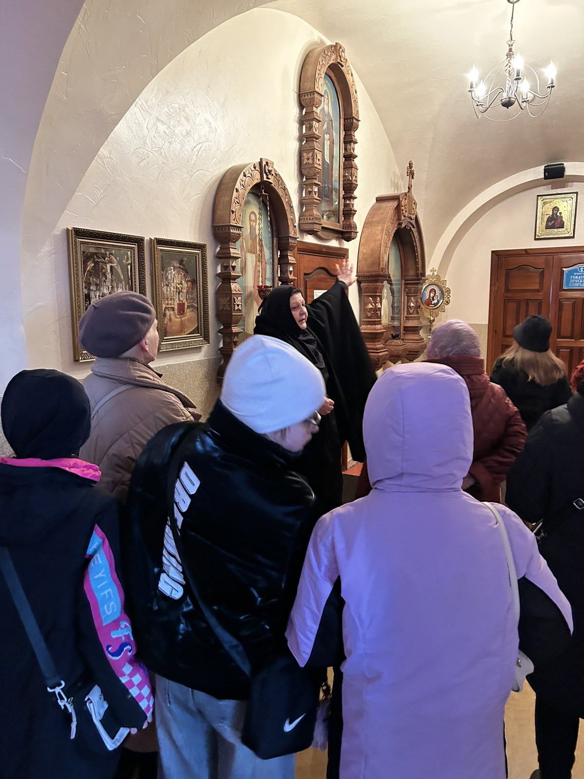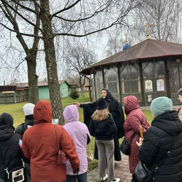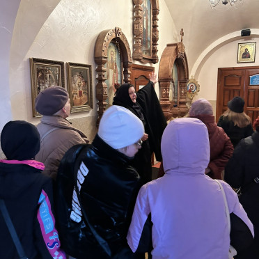 Инокиня Елена провела экскурсию по территории монастыря, познакомила с его историей, со святынями обители, чтимыми иконами. Экскурсионная группа посетила летний храм, домовую церковь Рождества Пресвятой Богородицы, расположенную на втором этаже сестринского корпуса.