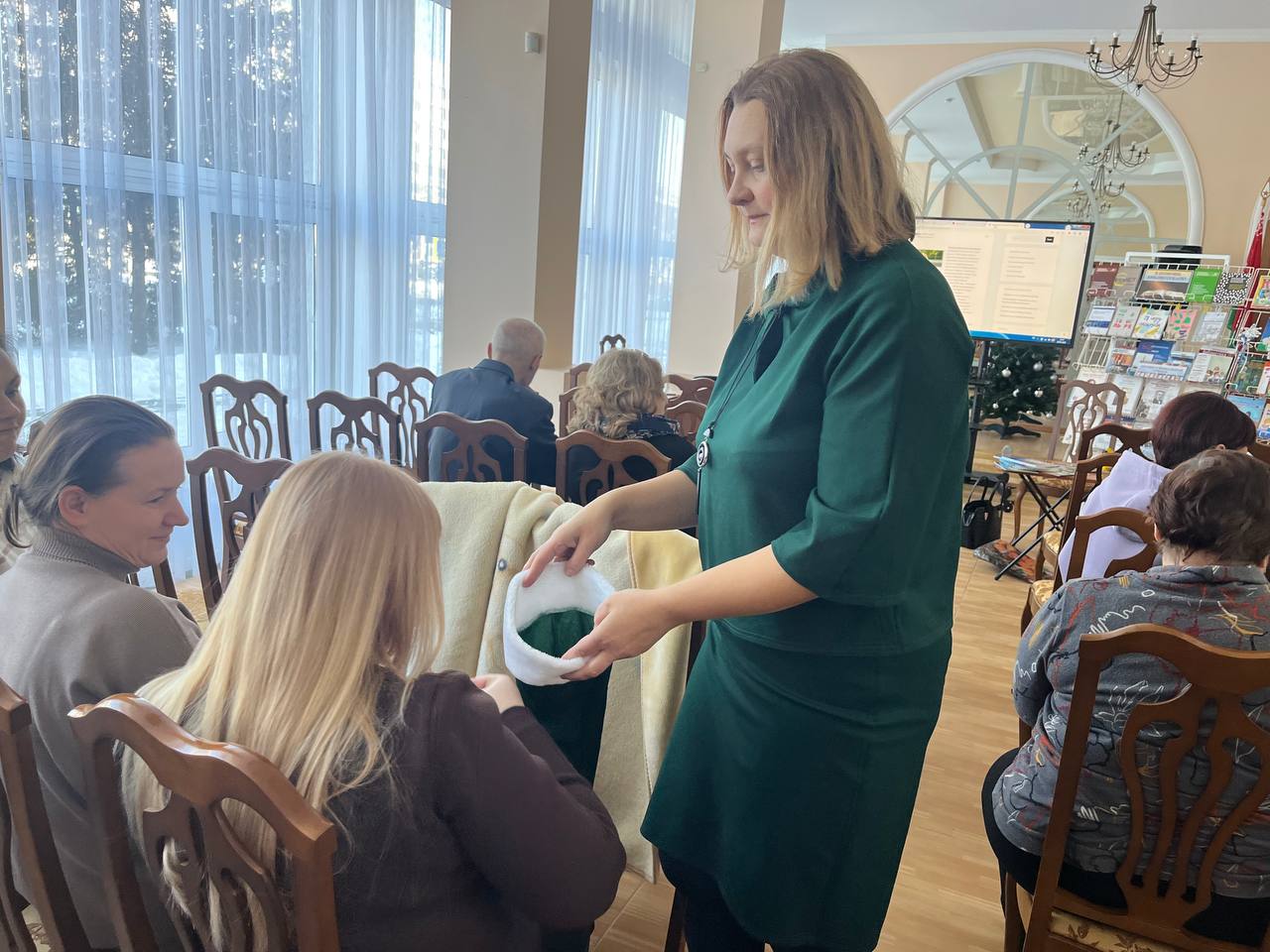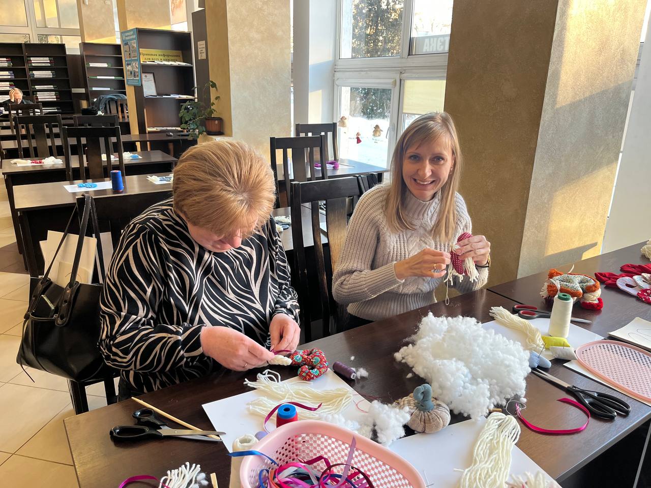 Кульминацией визита стало участие работников школьных библиотек в мастер-классе по изготовлению льняной игрушки-сувенира. Каждый смог своими руками создать памятный подарок, символизирующий связь с библиотекой и любовью к чтению.