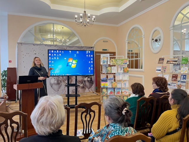 Заведующая абонементом Ирина Степановна Фомина познакомила школьных библиотекарей с одной из форм работы – "медленные чтения", а также пригласила на заседания книжного клуба «На Читающем бульваре», где рады каждому.