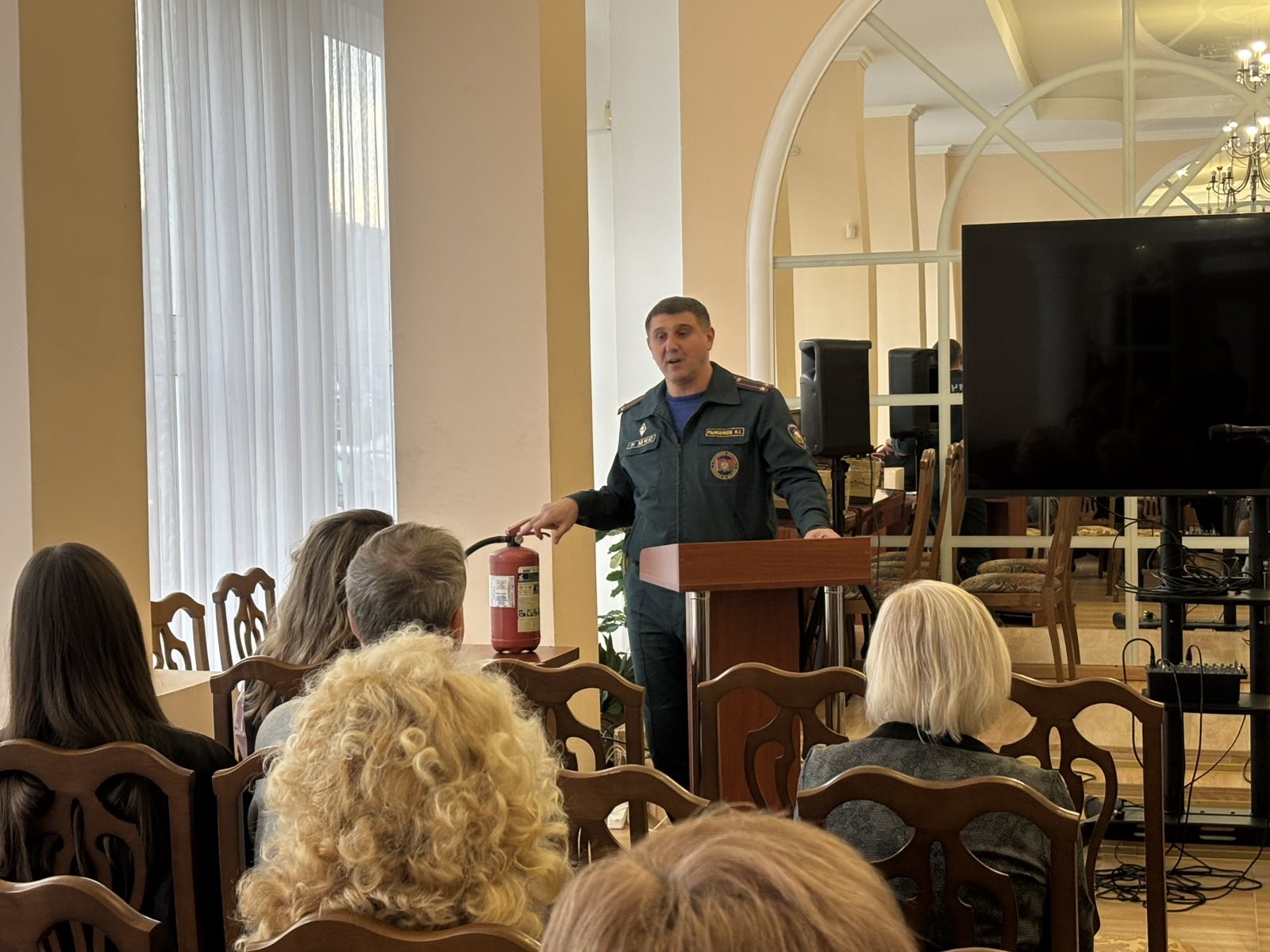 Кирилл Сергеевич также напомнил правила пользования первичными средствами пожаротушения и рассказал о правилах организации эвакуации. В завершение встречи он ответил на вопросы сотрудников, подчеркнув значимость совместных усилий каждого в обеспечении безопасности и сохранении жизни граждан.