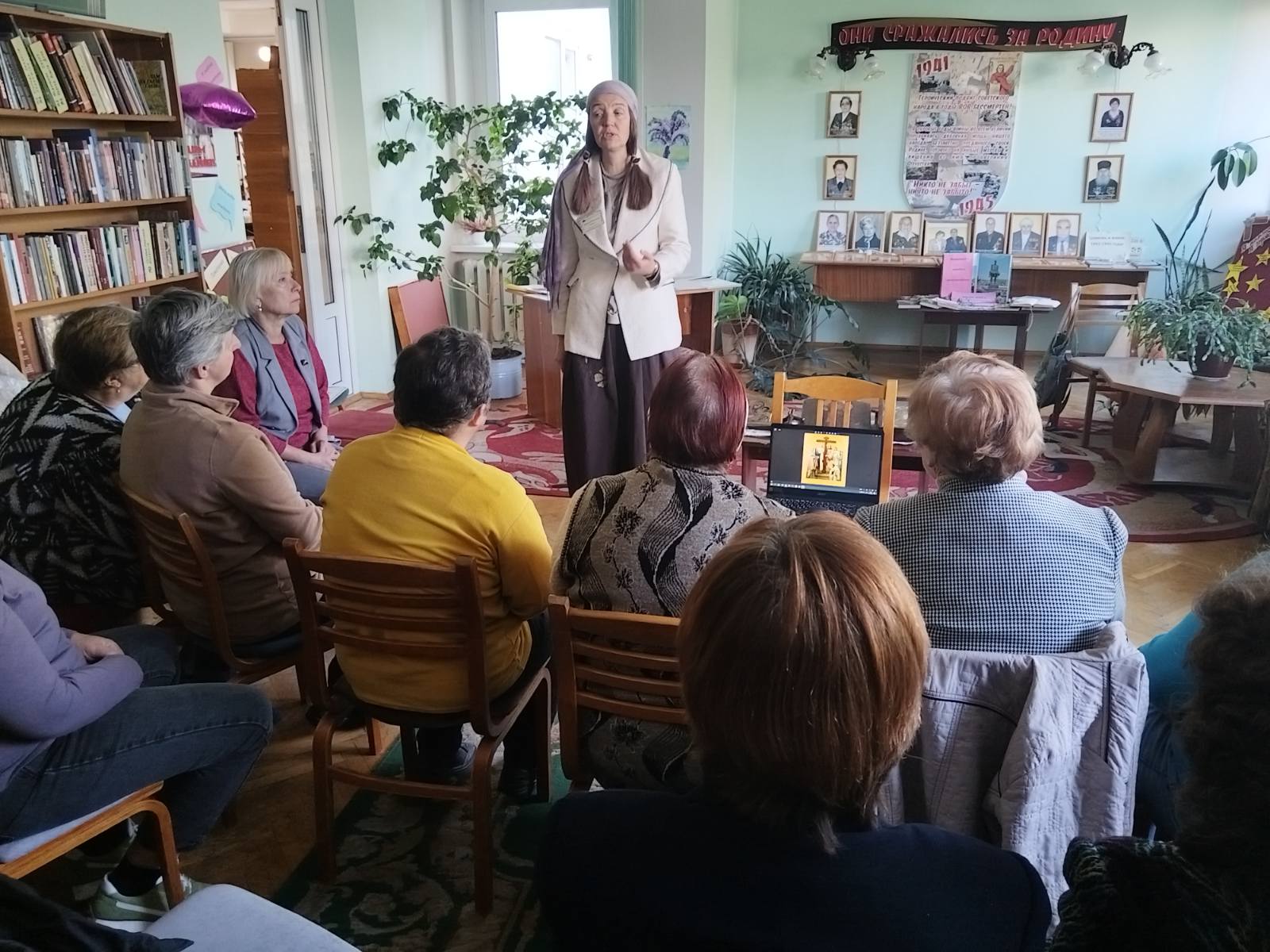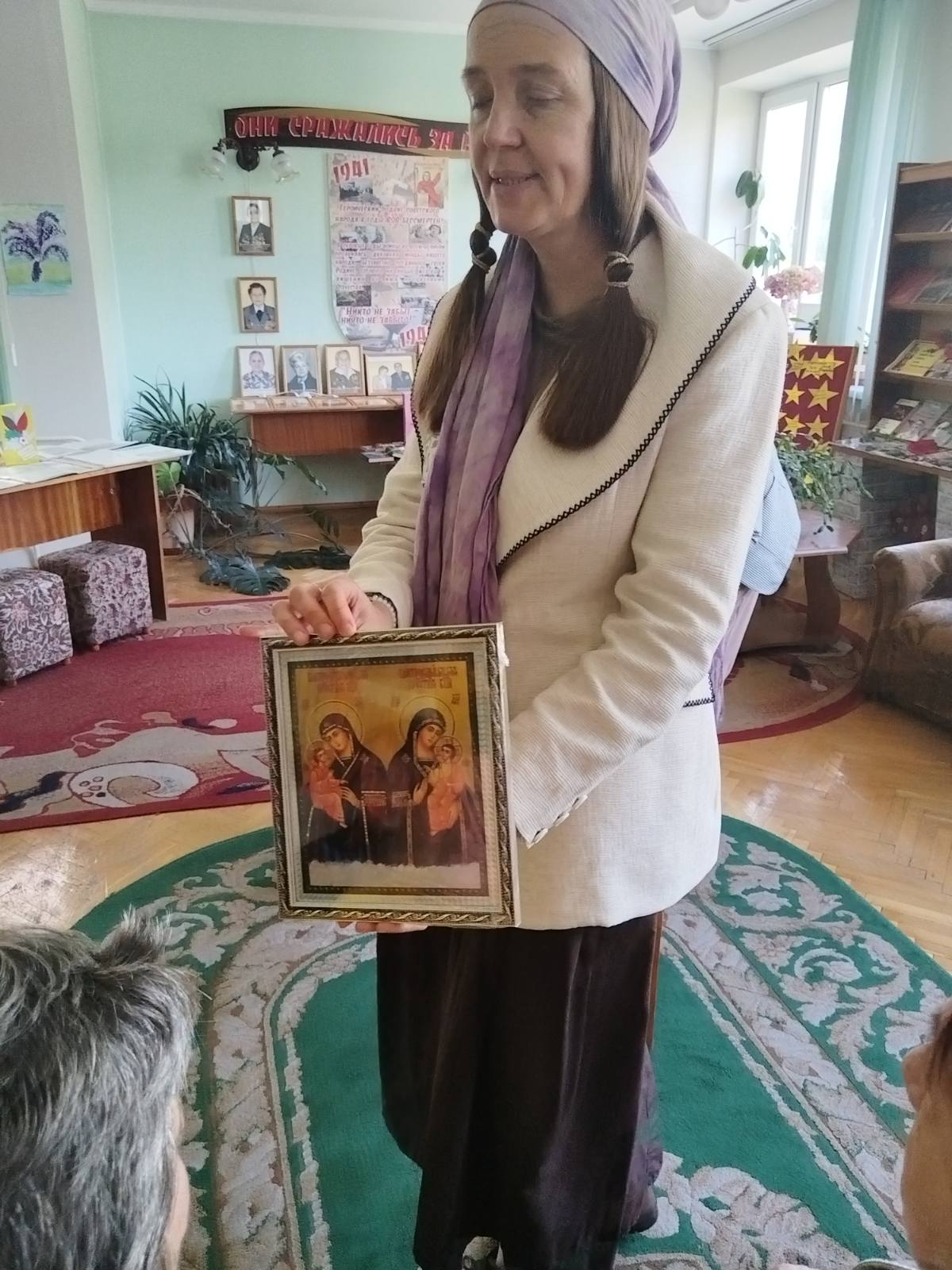 После чего для собравшихся гостей специалист музея «Спасенные художественные ценности» Наталья Николаевна Петрова провела беседу-презентацию «Мир и свет православной иконы», на которой были показаны музейные экспонаты с образами Богородицы и Спасителя. Доступно и интересно ведущая рассказала о каждом образе, отвечая при этом на возникающие вопросы аудитории.