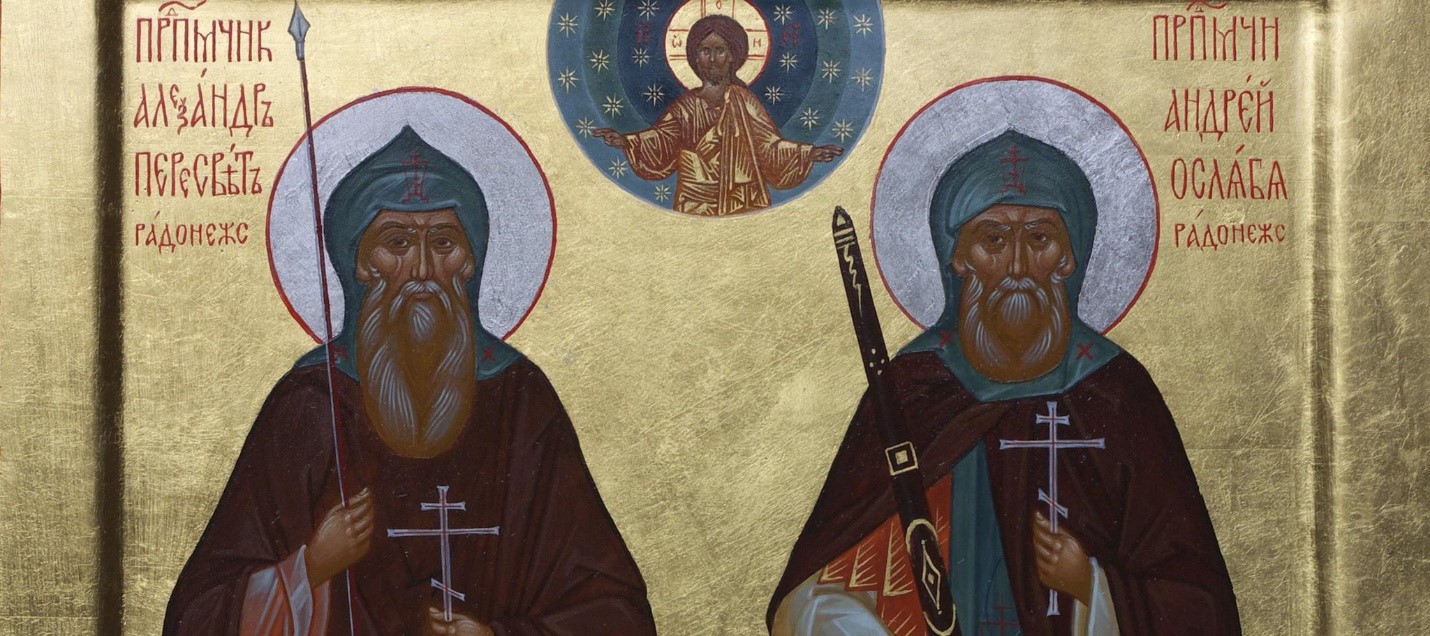 Андрей Радонежский (в миру Родион Ослябя) и Александр Радонежский (в миру Пересвет) были монахами-иноками принявшими схимнический постриг от Сергия Радонежского. В миру оба были боярами и опытными воинами: один в Брянске, другой – в Любутске (Брянская область). Видимо поэтому Сергий Радонежский выбрал именно их, когда к нему в Троице-Сергиев монастырь прибыл Дмитрий Донской с просьбой о выделении братьев для участия в Куликовской битве. Эти зрелые и сильные духом воины славились не только военными умениями, но и мастерством верховой езды.
