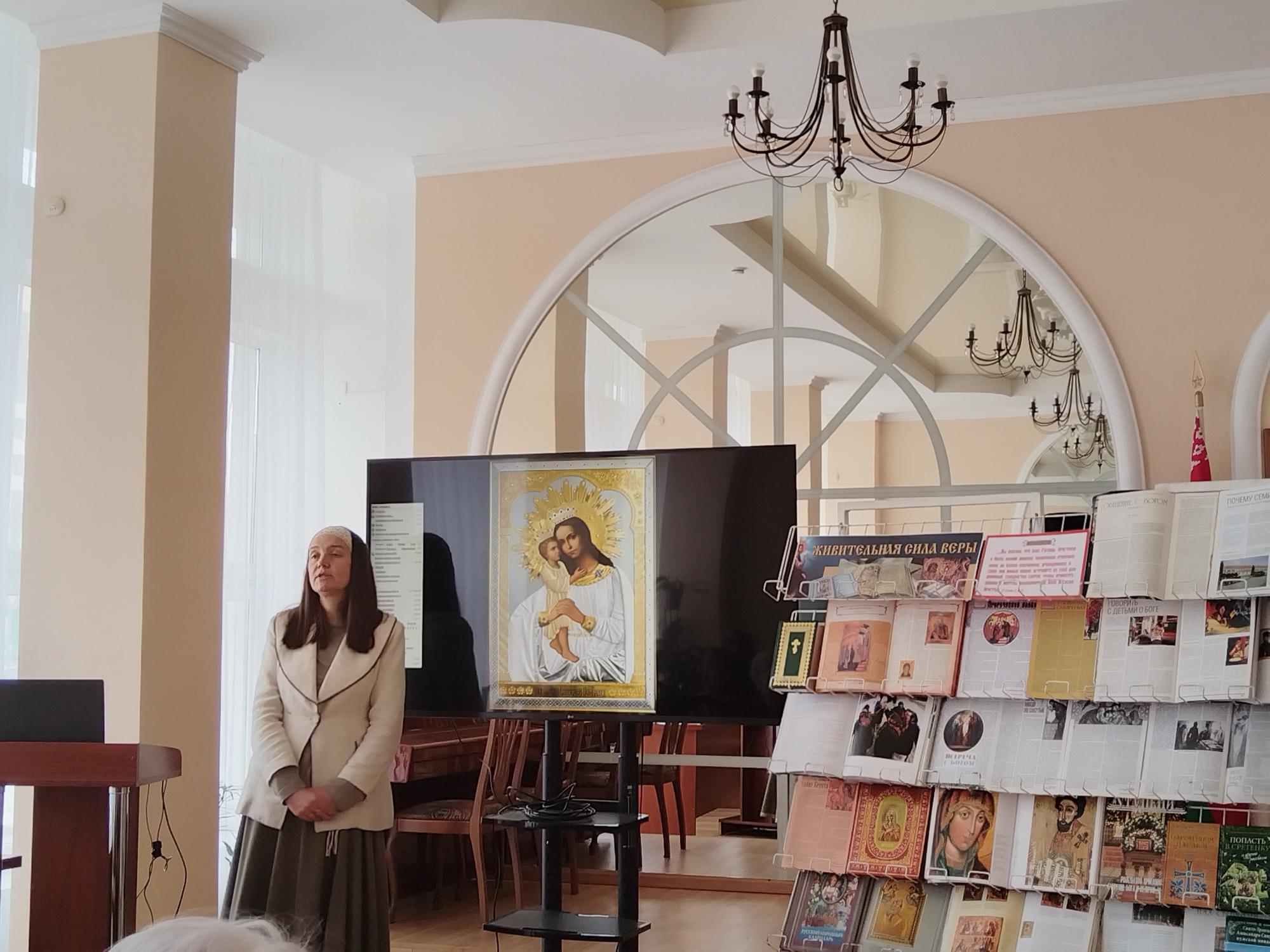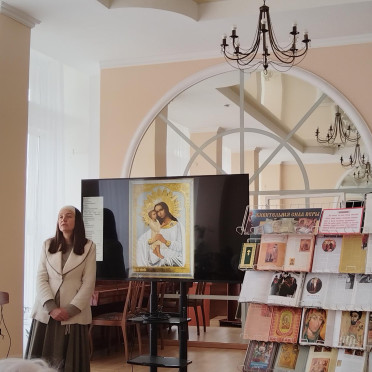 18 февраля в конференц-зале библиотеки им. А. С. Пушкина Наталья Николаевна выступила с лекцией «Икона «Сретение Господне».