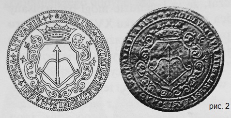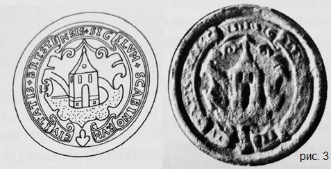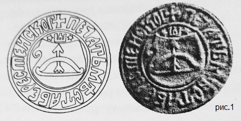 Первый герб Берестья «серебряный лук со стрелой, направленной вверх» использовался с конца XV в. по 1795 г. на городских печатях (рисунки 1 и 2). В 1554 г. войтовско-лавницкий суд Бреста получил отдельную гербовую печать с изображением четырехугольной башни у реки (рисунок 3). В 1563 г. Николай Радзивилл Черный в основанной им ранее протестантской типографии издал на польском языке знаменитую Брестскую Библию.