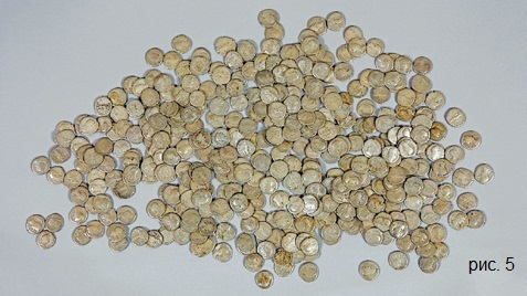 – Малечский, Березовский р-н, 1993 г., при находке 409 (?) – сохранилось 389 монет и сосуд (рисунок 5);
