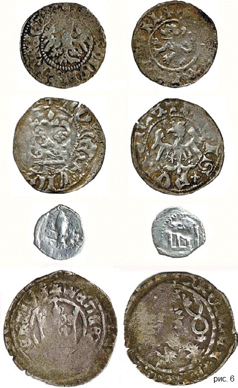 Комплекс начала XV в. был обнаружен в 2006 г.в Каменецком р-не Брестской обл. (рисунок 6). Состоял он из пражских грошей, поздних литовских денариев Витовта, 2 (?) литовских денариев Казимира и небольшой примеси польских коронных монет Владислава Ягелло и Казимира. Большая часть монет хранится в Музее денег Национального банка: старолитовские денарии Витовта (152 ед.), монеты Польши (10 ед.), пражские гроши (60 ед.) XIV в. – начала XV в. (КП 700, 21.12.2006). Остальное – 20–30 (?) монет – находится в частных коллекциях.