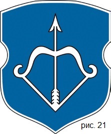 Современный герб города (рисунок 21), похожий на старый герб 1494–1795 гг., был утвержден Решением Брестского городского Совета народных депутатов 26 января 1991 г.: «На голубом поле барочного щита серебряный лук с натянутой тетивой и стрела, направленная вверх». Зарегистрирован в Гербовом матрикуле Республики Беларусь 1 июня 1994 г. за № 1.