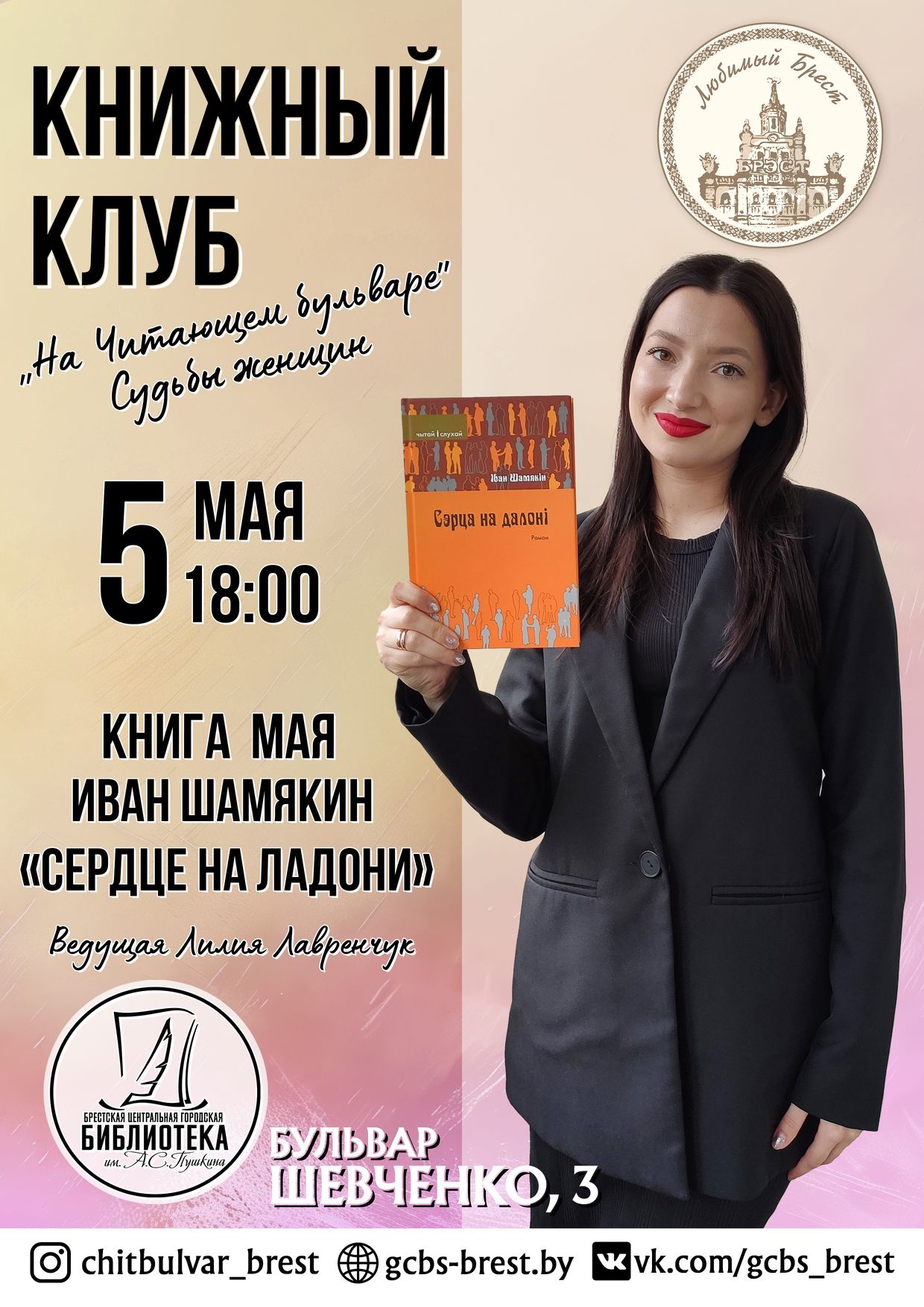 5 мая 2026 в 18:00 (вторник) – встреча участников книжного клуба «На Читающем бульваре» в Центральной городской библиотеке им. А.С.Пушкина.