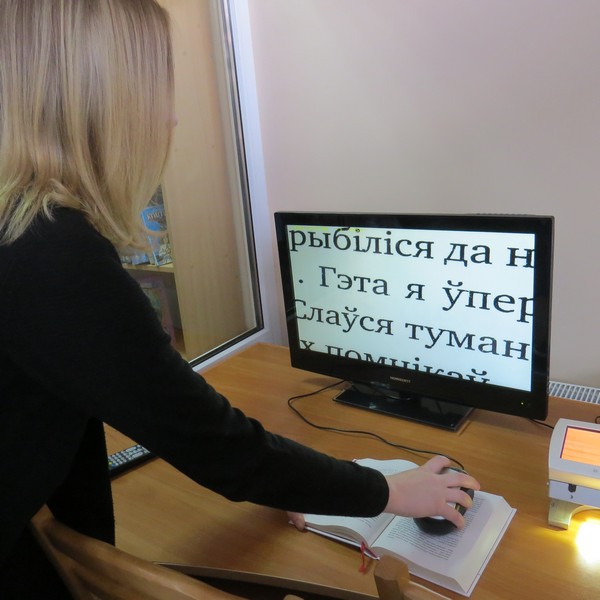 Обслуживание слабовидящих читателей осуществляется не только в стенах библиотеки, но и выезжая на рабочие места на УП «Вертэкс-Брест»; осуществляет также доставку книг на дом.