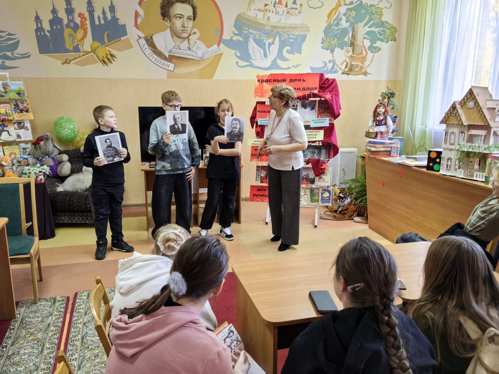 Накануне празднования Октябрьской революции в Городской детской библиотеке собрались любознательные ребята, чтобы изучить вопрос значения событий 1917 года в нашей современной жизни.