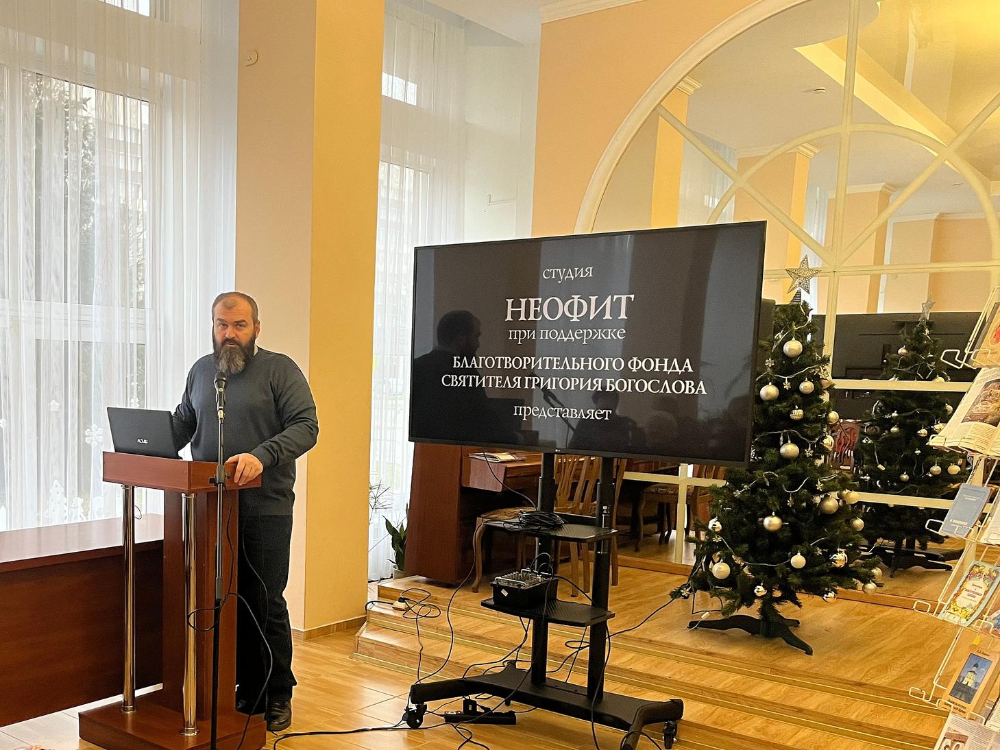 В рамках духовно-просветительского проекта «Виноград» в центральной городской библиотеке им.А.С.Пушкина 15 декабря состоялась лекция священника Игоря Лопыко, посвященная Таинству Евхаристии.
