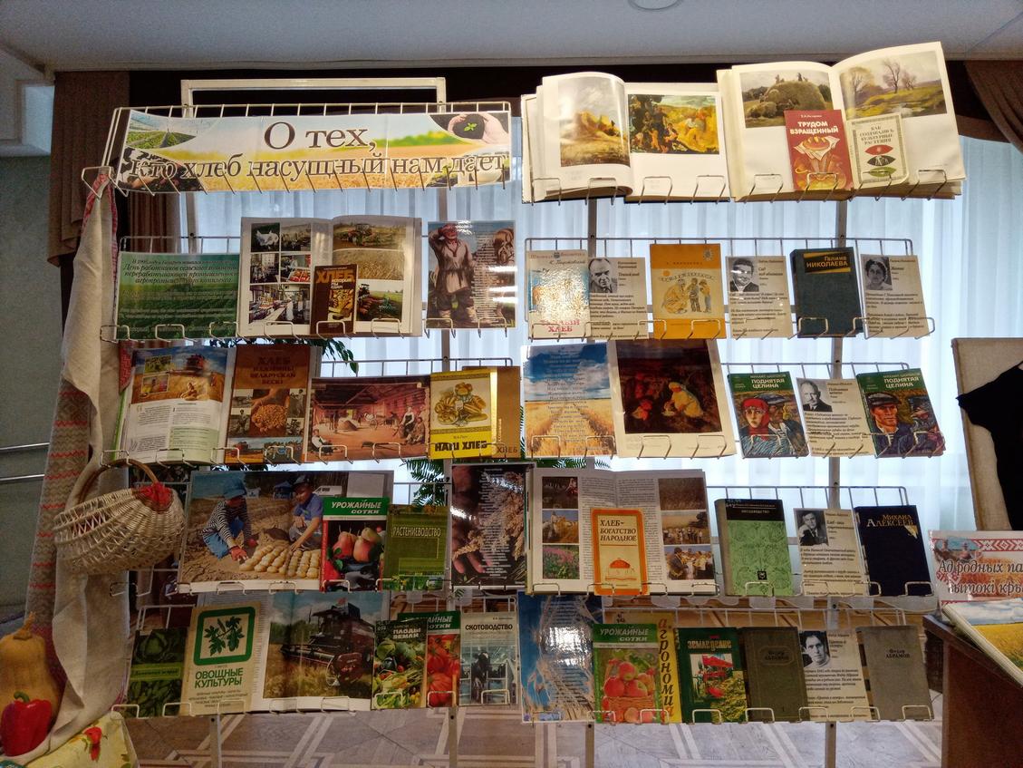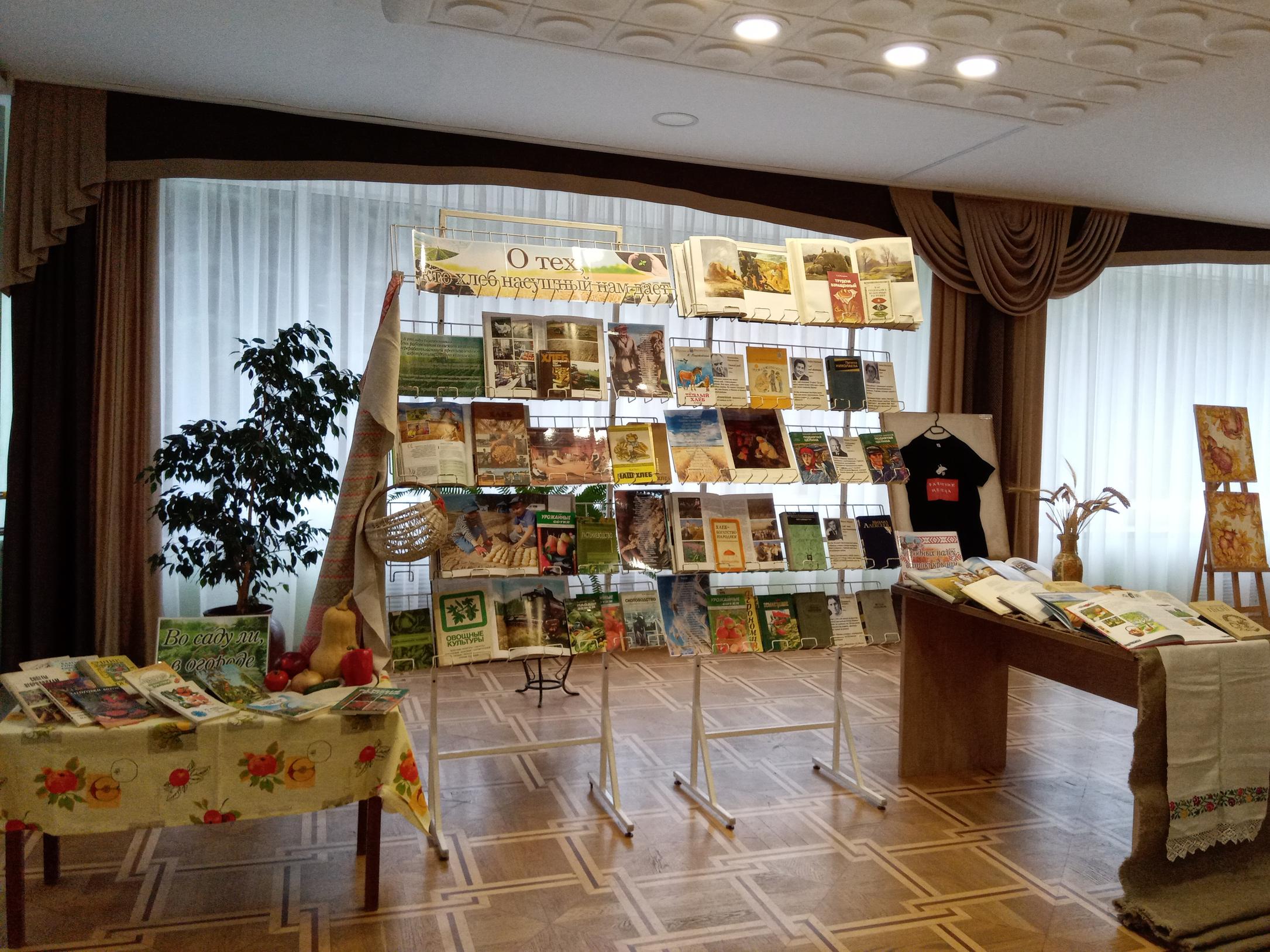 Библиотека «Юность» подготовила для посетителей концерта выездную книжную выставку «О тех, кто хлеб насущный нам дает». Для профессионалов-аграриев была подобрана специальная литература по растениеводству, животноводству, технологии пищевой промышленности. Не оказались забытыми и любители: они могли полистать книги и журналы, рассчитанные на владельцев дачных участков. Кроме того, была представлена художественная литература, посвященная тем, кто трудится на земле. Это произведения М. Шолохова, Ф. Абрамова, Г. Николаевой.