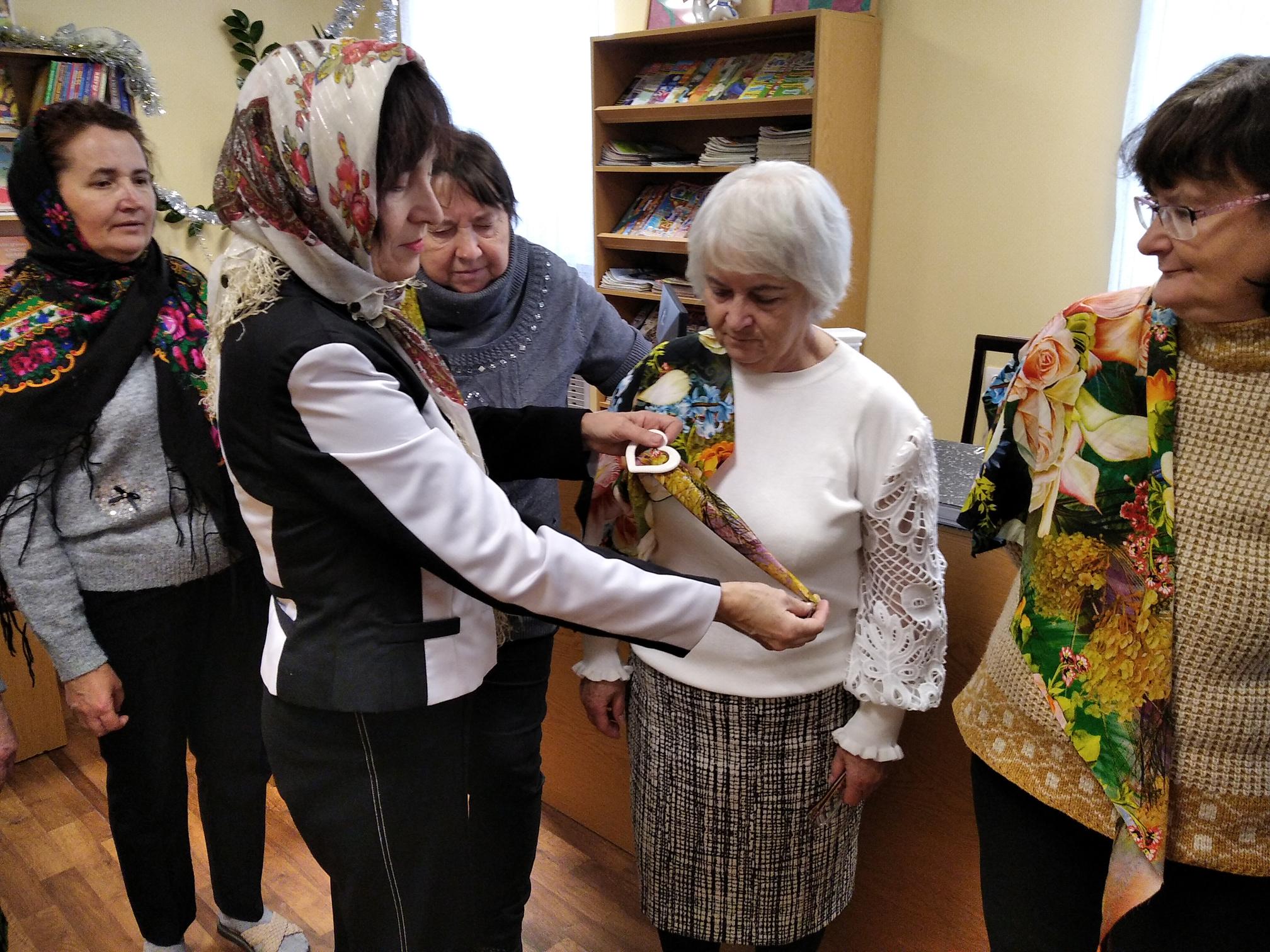 Под таким названием прошёл час досуга в клубе «Флора», что при библиотеке-филиале № 2. Рождественский «Модный приговор» для присутствующих подготовила член Белорусского союза мастеров народного творчества Галина Зигмундовна Масюк. Она провела мастер-класс по завязыванию платков с пряжками. Платки, к слову, все получили в подарок. Также Галина Зигмундовна показала, как завязывались большие платки в старину на Руси.