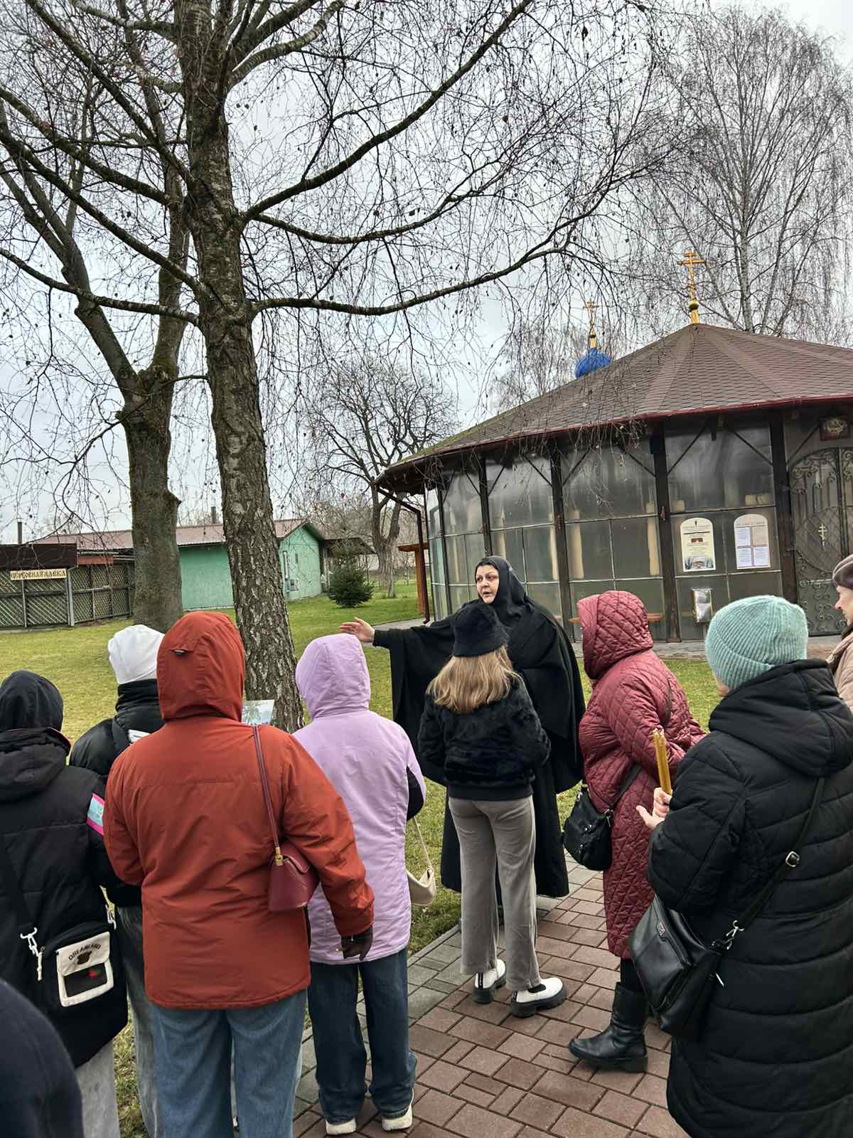 Инокиня Елена провела экскурсию по территории монастыря, познакомила с его историей, со святынями обители, чтимыми иконами. Экскурсионная группа посетила летний храм, домовую церковь Рождества Пресвятой Богородицы, расположенную на втором этаже сестринского корпуса.