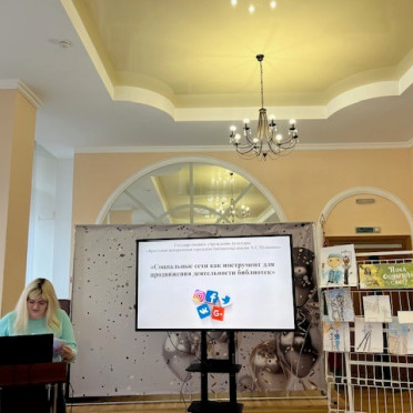 Анастасия Викторовна Мишковец, библиотекарь отдела маркетинга и социокультурной деятельности, поделилась опытом работы в соцсетях (Instagram, ВКонтакте и Facebook) по продвижению библиотечной деятельности. Анастасия Викторовна подробно остановилась на возможностях социальных сетей как инструменте для рекламы услуг, выставок и мероприятий, помогающем в привлечении новых пользователей.