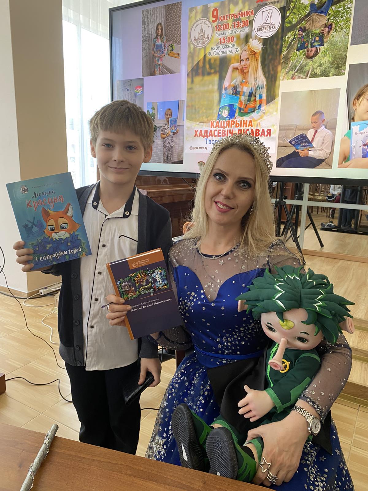 Творчая сустрэча ў рамках праекта «Кніжнае святло «Звязды» з сучаснай беларускай пісьменніцай, аўтаркай кніг для дзяцей і падлеткаў – Кацярынай Хадасевіч-Лісавой – прайшла ў Цэнтральнай гарадской бібліятэцы імя А.С.Пушкіна 9 кастрычніка. Зацікаўленымі слухачамі сталі вучні сярэдняй школы № 15 і пачатковай школы № 6.
