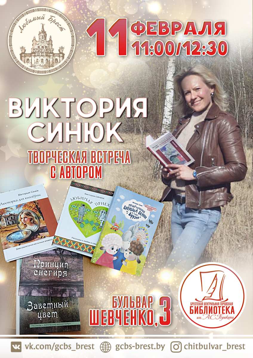 В Брестской центральной городской библиотеке имени А.С. Пушкина 11 февраля пройдут творческие встречи с писательницей Викторией Синюк.